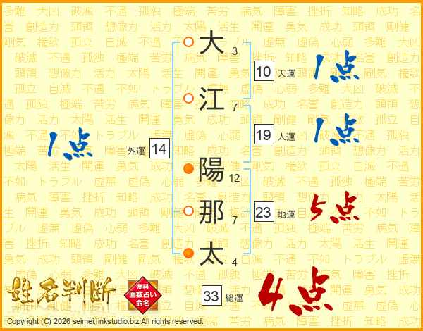 大江陽那太さんの総運は33画の4点!