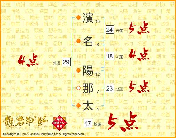 濱名陽那太さんの総運は47画の5点!