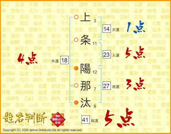上条陽那汰さんの総運は41画の5点!