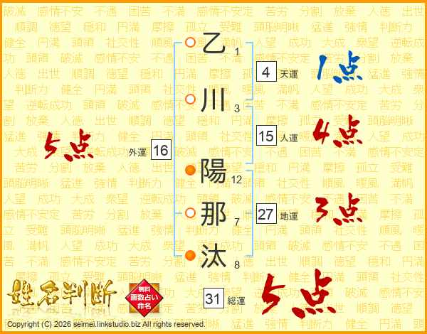 乙川陽那汰さんの総運は31画の5点!