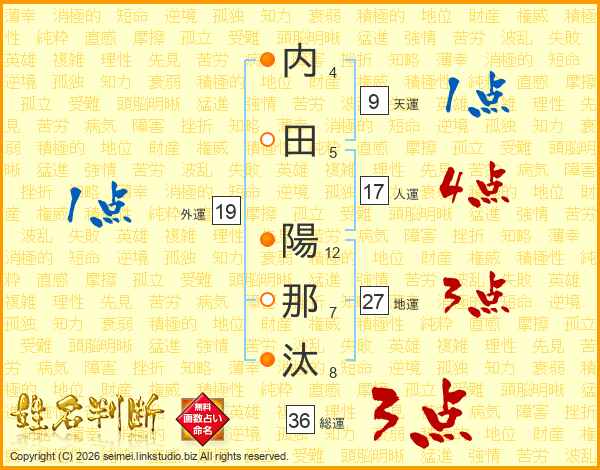 内田陽那汰さんの人運は17画の4点!