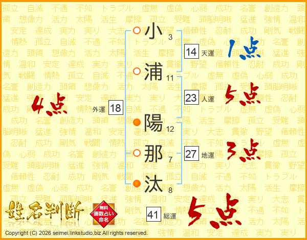 小浦陽那汰さんの総運は41画の5点!