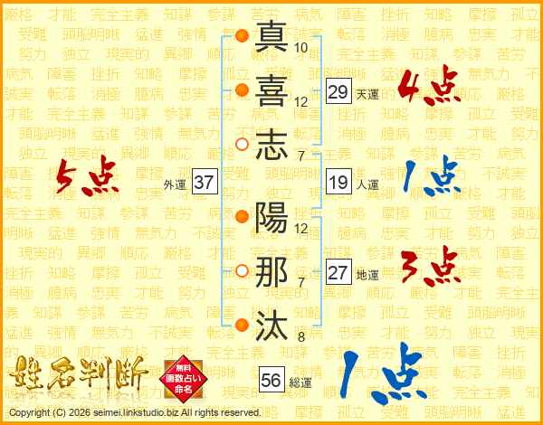 真喜志陽那汰さんの外運は37画の5点!