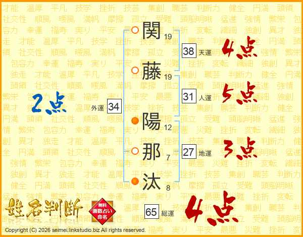 関藤陽那汰さんの総運は65画の4点!