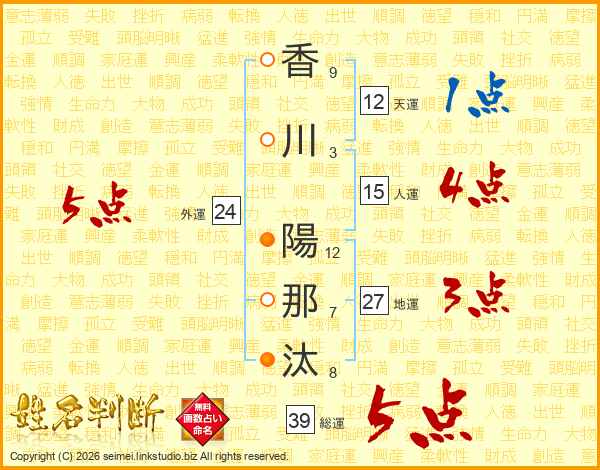 香川陽那汰さんの総運は39画の5点!