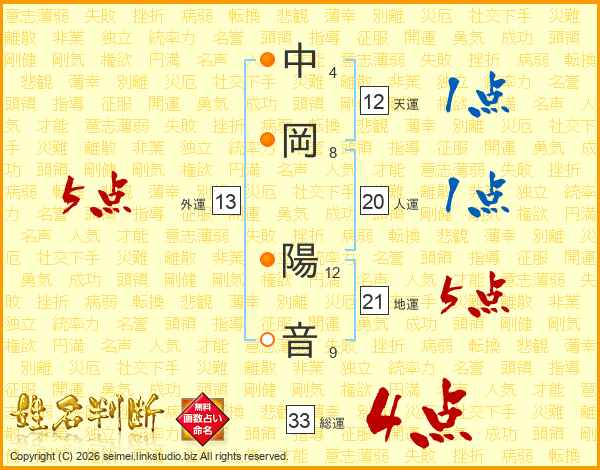 中岡陽音さんの総運は33画の4点!