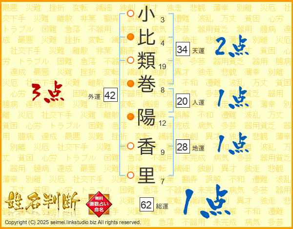 小比類巻陽香里さんの総運は62画の1点!