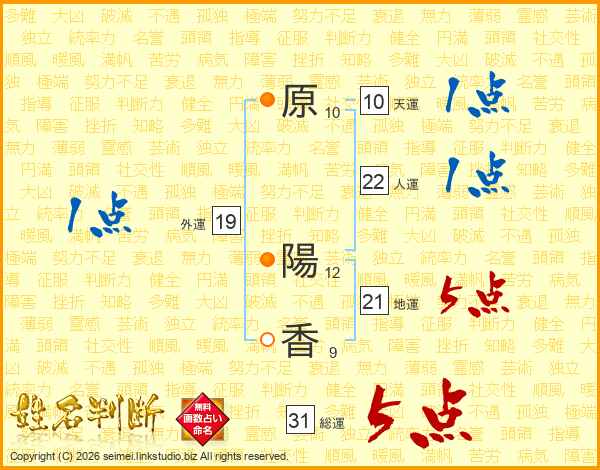 原(10画) 陽(12画)香(9画)