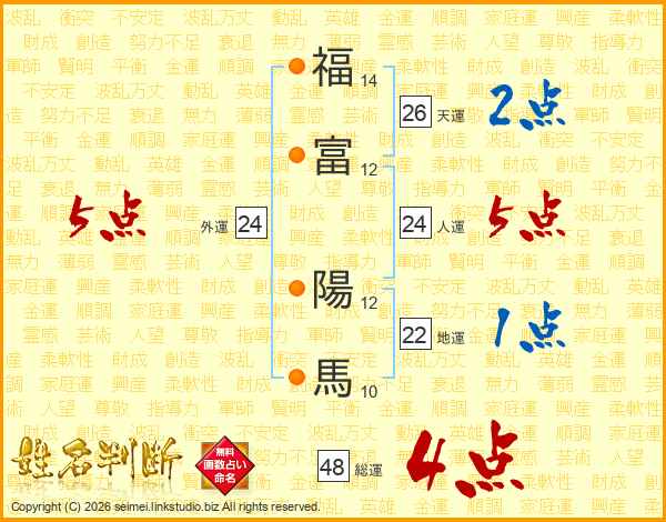 福富陽馬さんの天運は26画の2点!