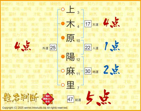 上木原陽麻里さんの総運は47画の5点!