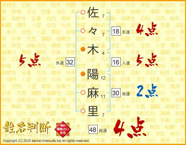 佐(7画)々(7画)木(4画) 陽(12画)麻(11画)里(7画)