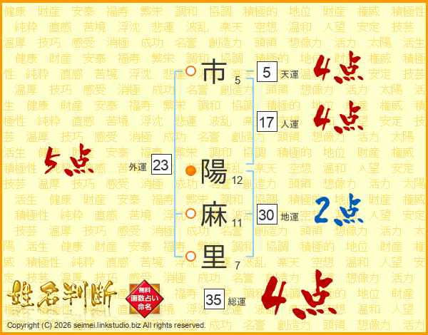 市陽麻里さんの総運は35画の4点!