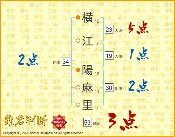 横江陽麻里さんの総運は53画の3点!