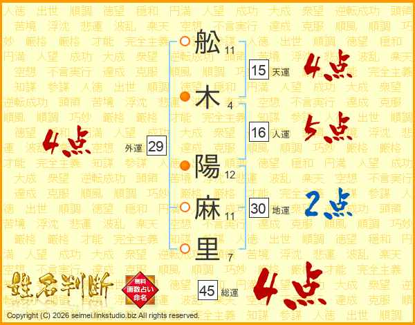 舩木陽麻里さんの総運は45画の4点!