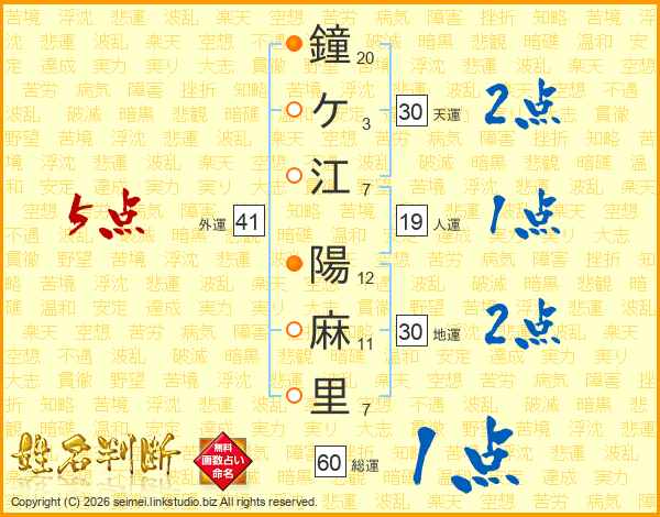 鐘ケ江陽麻里さんの外運は41画の5点!