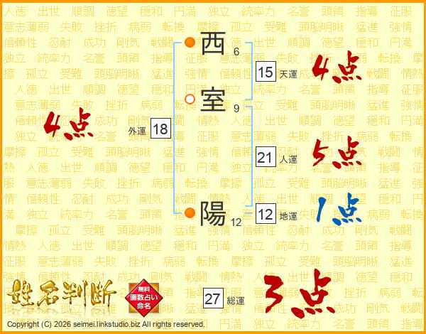 西室陽さんの総運は27画の3点!