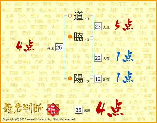 道脇陽さんの天運は23画の5点!
