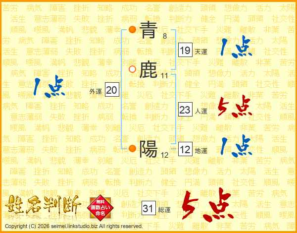 青鹿陽さんの総運は31画の5点!
