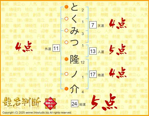と(2画)く(1画)み(3画)つ(1画) 隆(12画)ノ(1画)介(4画)