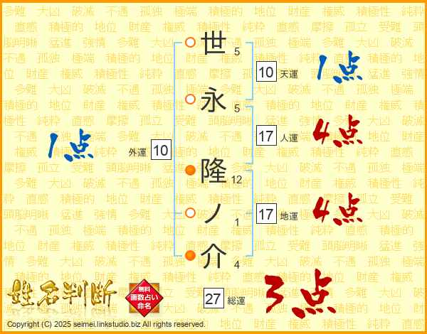 世(5画)永(5画) 隆(12画)ノ(1画)介(4画)