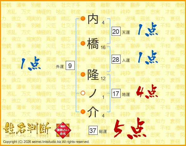内橋隆ノ介さんの総運は37画の5点!