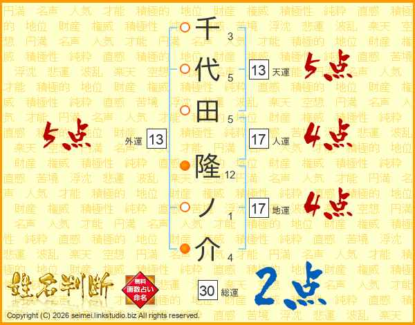 千代田隆ノ介さんの総運は30画の2点!