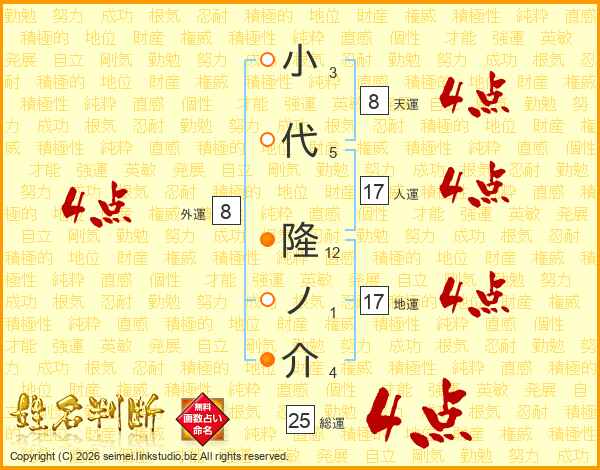 小代隆ノ介さんの総運は25画の4点!