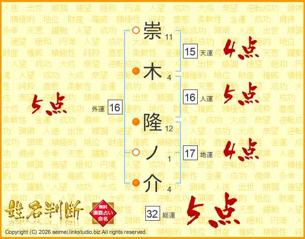崇木隆ノ介さんの総運は32画の5点!