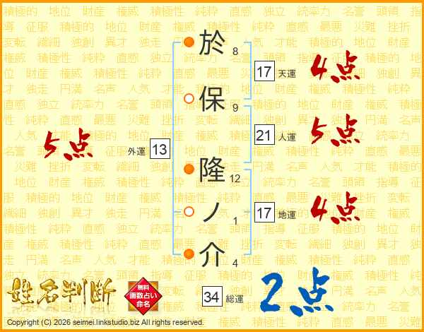 於保隆ノ介さんの天運は17画の4点!