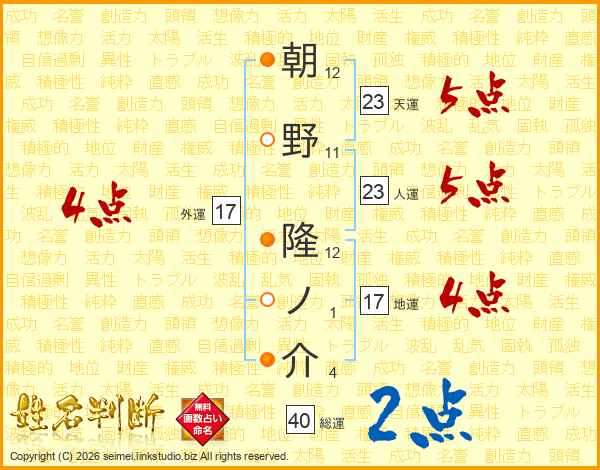 朝野隆ノ介さんの総運は40画の2点!