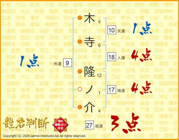 木寺隆ノ介さんの総運は27画の3点!