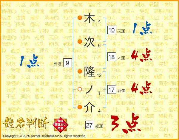 木次隆ノ介さんの総運は27画の3点!