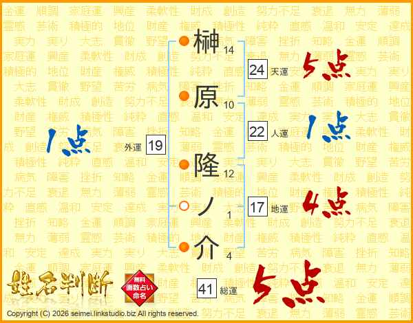 榊(14画)原(10画) 隆(12画)ノ(1画)介(4画)