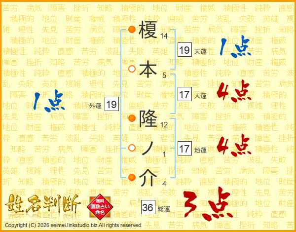 榎本隆ノ介さんの総運は36画の3点!