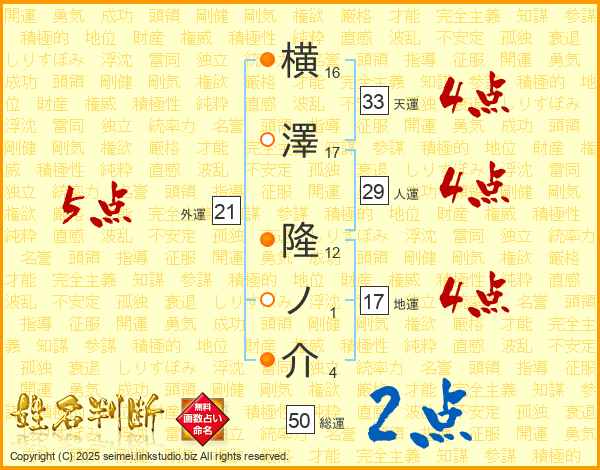 横(16画)澤(17画) 隆(12画)ノ(1画)介(4画)