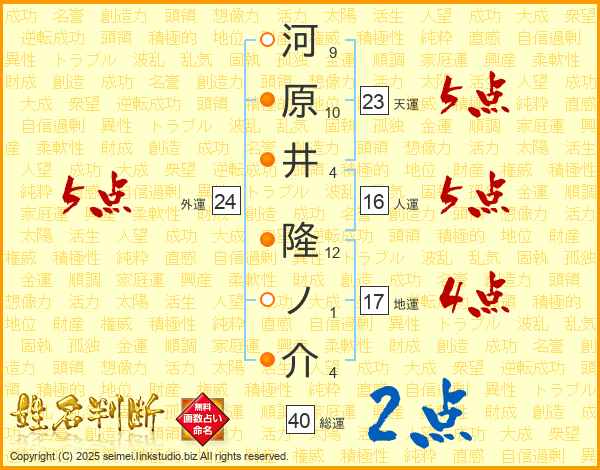 河原井隆ノ介さんの総運は40画の2点!