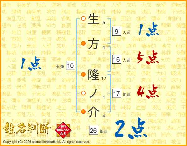 生方隆ノ介さんの総運は26画の2点!