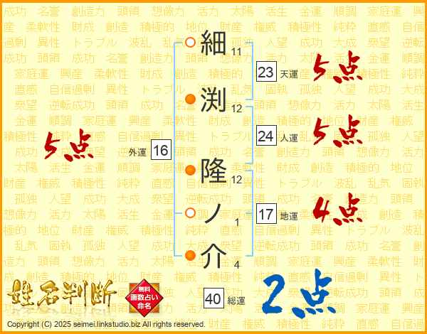 細(11画)渕(12画) 隆(12画)ノ(1画)介(4画)