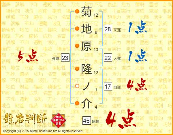 菊(12画)地(6画)原(10画) 隆(12画)ノ(1画)介(4画)