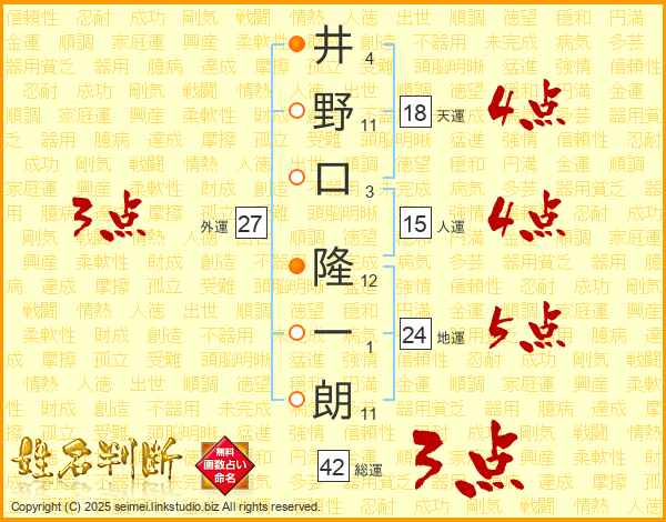 井野口隆一朗さんの天運は18画の4点!