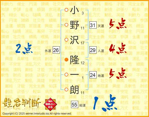 小野沢隆一朗さんの天運は31画の5点!