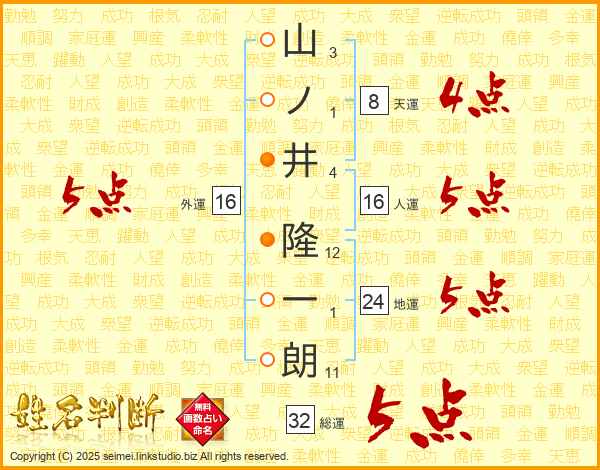 山(3画)ノ(1画)井(4画) 隆(12画)一(1画)朗(11画)