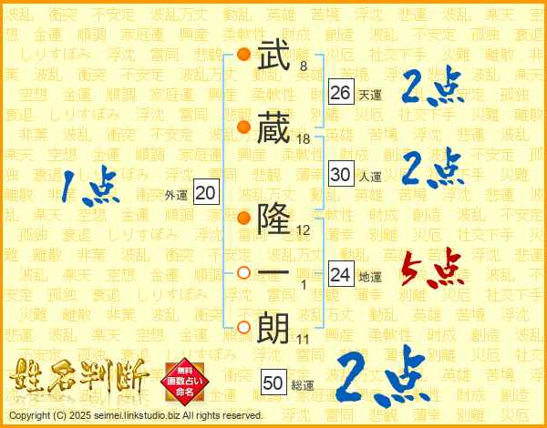 武蔵隆一朗さんの天運は26画の2点!