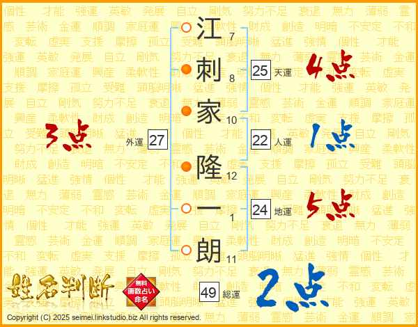 江刺家隆一朗さんの天運は25画の4点!