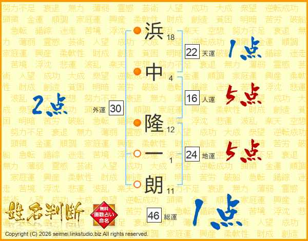 浜中隆一朗さんの天運は22画の1点!