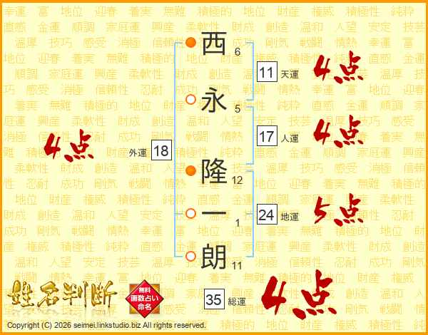 西永隆一朗さんの天運は11画の4点!