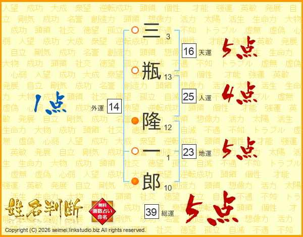 三(3画)瓶(13画) 隆(12画)一(1画)郎(10画)