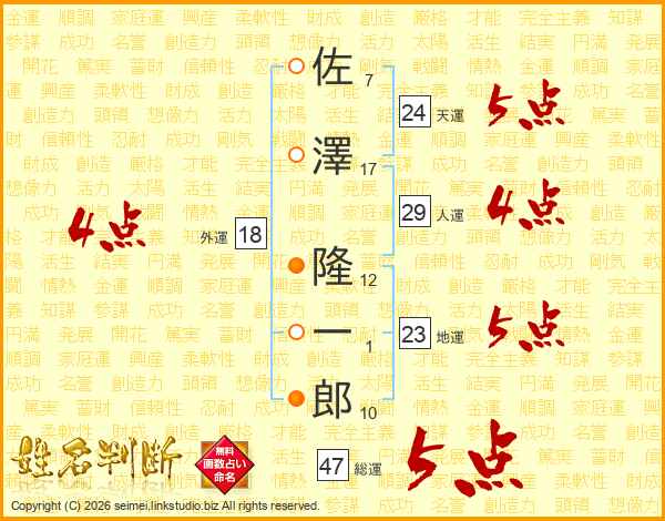 佐澤隆一郎さんの天運は24画の5点!