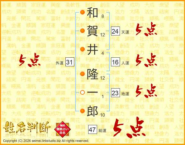 和(8画)賀(12画)井(4画) 隆(12画)一(1画)郎(10画)
