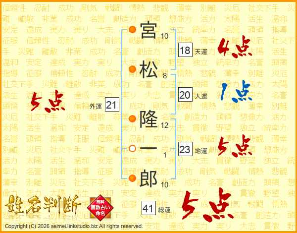 宮松隆一郎さんの人運は20画の1点!
